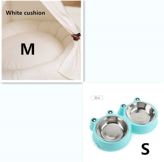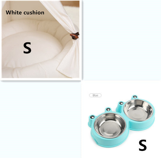 Fabric: canvas, wood, PP cotton Features The product is simple and beautiful, suitable for small pets, built-in canvas pad, is a must for pet home.